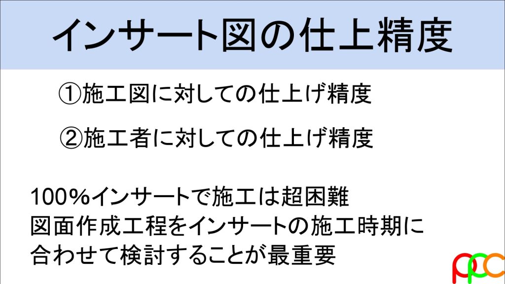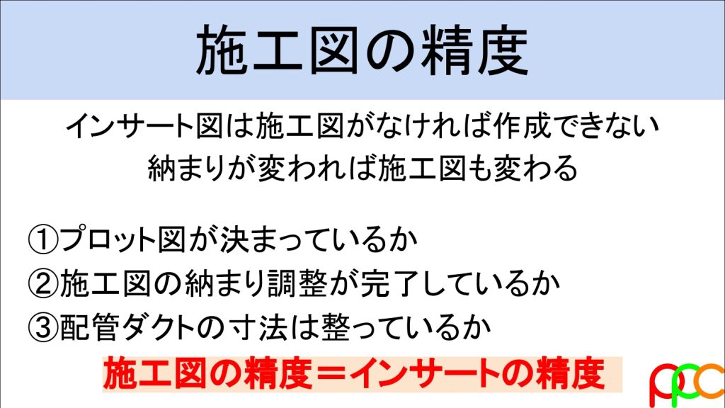 インサート図は施工図が固まっていないと描けません。まずはプロット図の成熟度を確認しましょう。