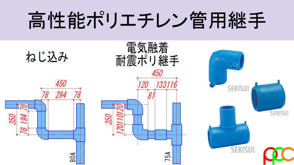 特に初期にねじ込みにて検討して、途中からエスロハイパーに変更したら納まらなくなってしまった、などのトラブルも起こりかねません。
