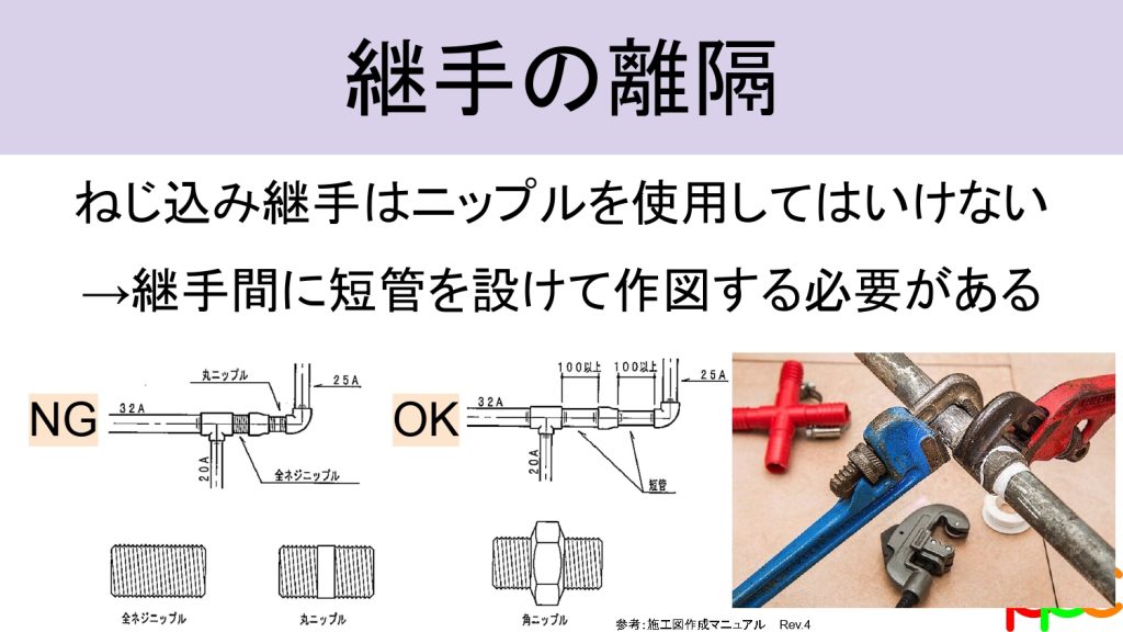 ねじ込み継手は継手同士の離隔を必ず設けましょう。