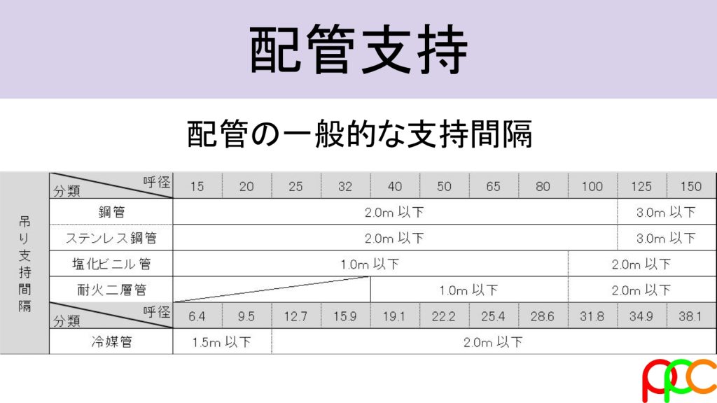 配管支持は系統ではなく使用する管材により決まるため、この時点で管種を把握していることが重要です。