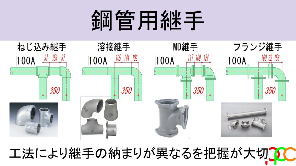 継手のサイズが大きくことなるため、系統を理解した上で作図に反映しましょう。