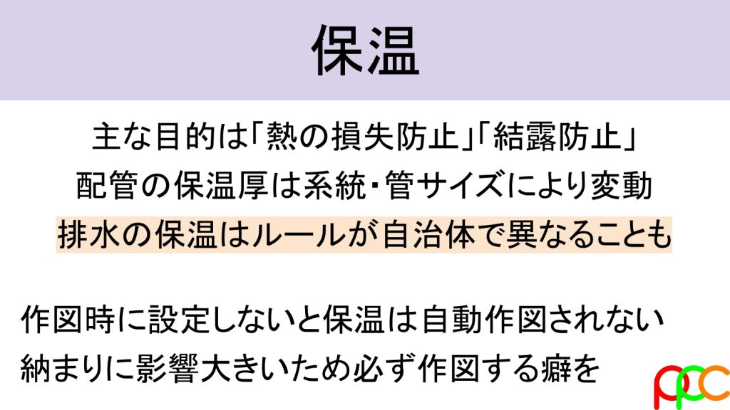 特に保温が必要な系統は作図時にしっかり反映することが大切です。
