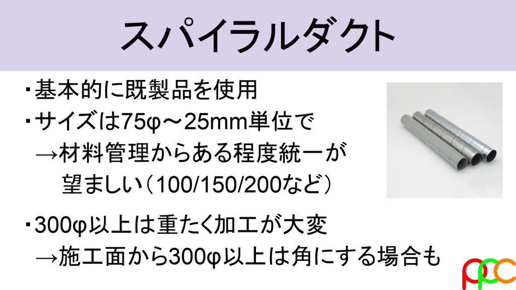 また何でもかんでも丸ダクトにするのも良くない場合と、角ダクトをほとんど使用しない現場では極力丸ダクトで選定する場合もあります。