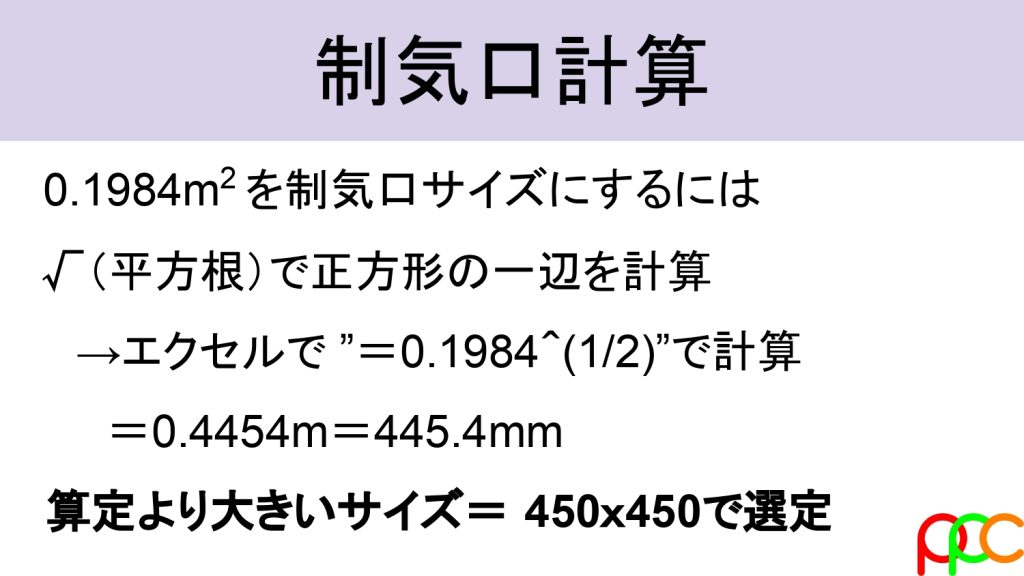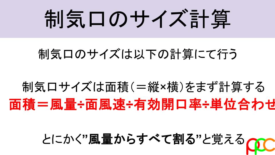 公式を全く覚えてなくても、これらを忘れなければ電卓一つあれば制気口サイズはすぐに求められます。