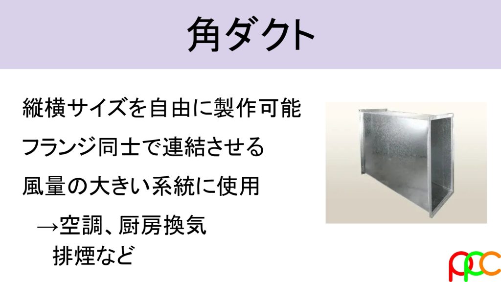 高層ビルや大型施設では当たり前にある角ダクトですが、小さなテナント施設やマンションでは使われいこともしばしば。