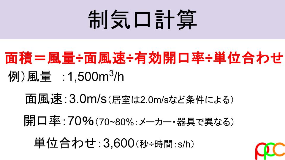 この時に、制気口は網目があるので開口率が影響します。それを割るだけです。