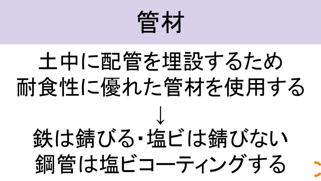 屋内配管では様々な材料を使用することができますが、外構に土中に埋設する配管となると使用できる材料・材質が大幅に少なくなります。