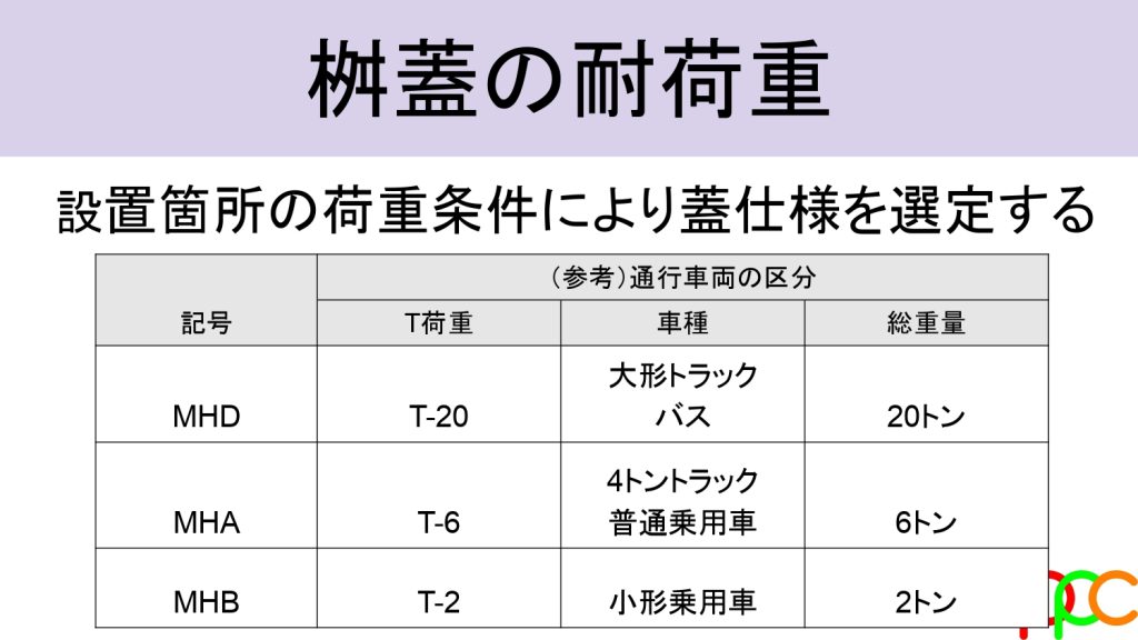 特に車道部に配置する場合は、通行する可能性のある車両を把握した上で桝の耐荷重を選定する必要があります。