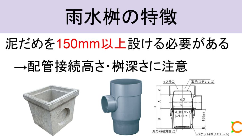 雨水桝には泥だめを設置するルールがあります。このルールは共通のルールのため必ず守りましょう。