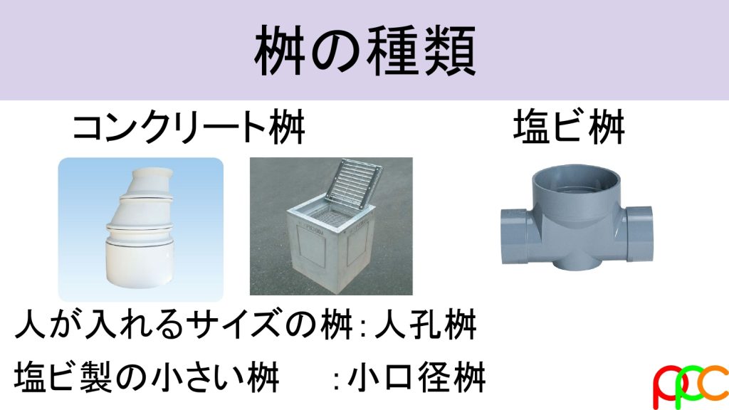 桝には主にコンクリート製のものと塩ビ製のものがあります。
