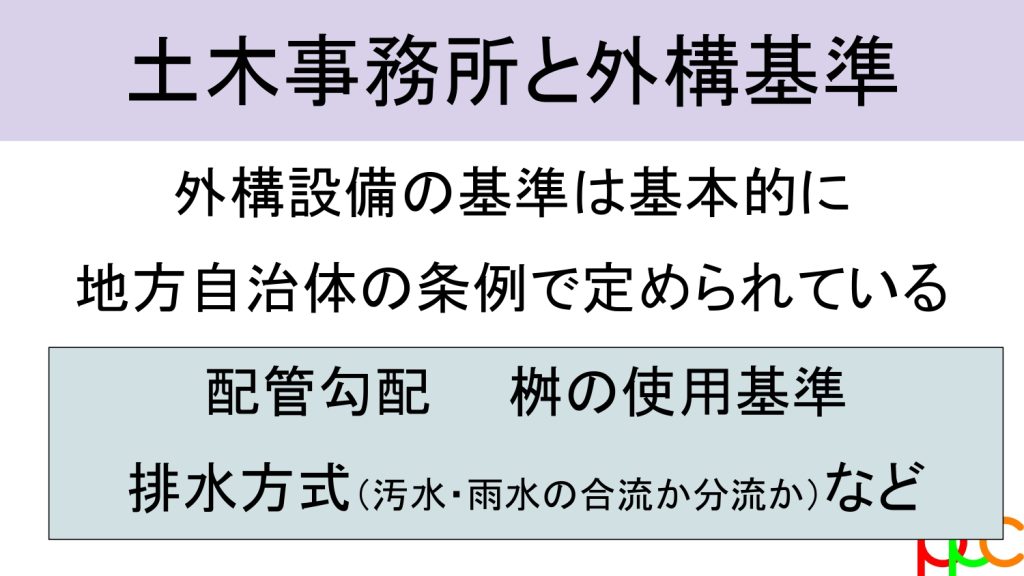 それに対し、外構設備の仕様については地方自治体毎に仕様が定められており、各所轄の土木事務所が管理をしています。