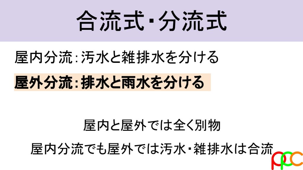 これにより、宅地からの排水管の流出条件が異なり、屋外合流方式と分流方式が決定されます。