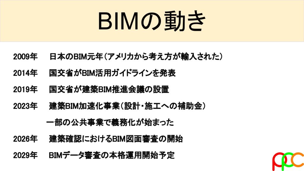 2026年にはBIMでの図面データ申請、2029年にはBIMデータだけで確認申請が行えることを目指しており、WEBによる申請が可能で審査期間も短縮できるため、設計会社の3Dモデル作成の取り組みに大きなメリットを産み出す取り組みが始まっています。