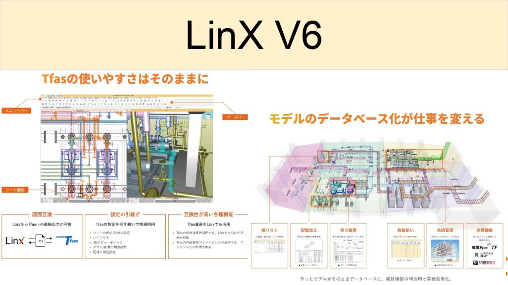 まずは設備CADのメーカーとして有名なダイテック社がTFASの次世代BIMソフトとしてリリースしている「LinX」についてご紹介します。