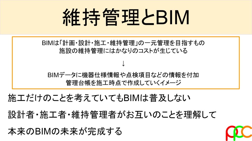 BIMとは設計段階から維持管理まですべてを通して考えていかなければ実現はできない、だからこそ時間がかかり難しい取り組みです。