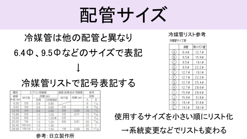 空調配管は他の配管と異なり小数点のサイズで表現されます。