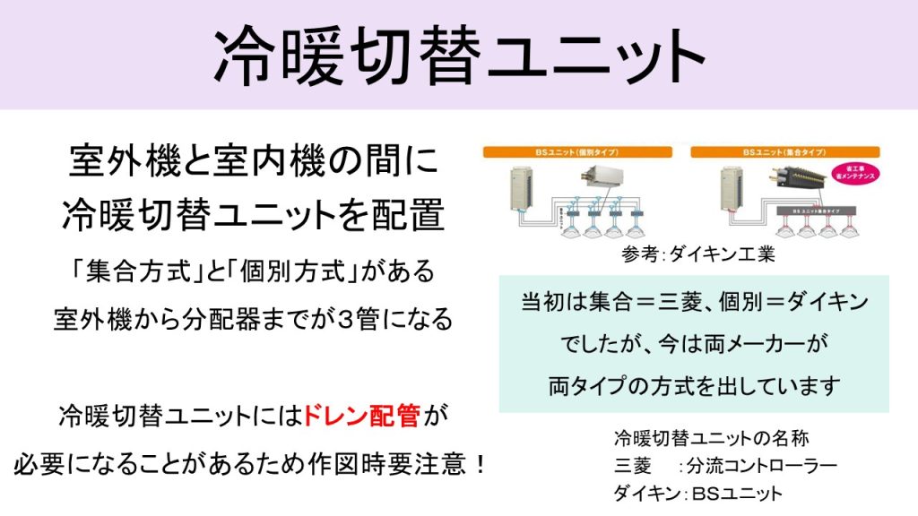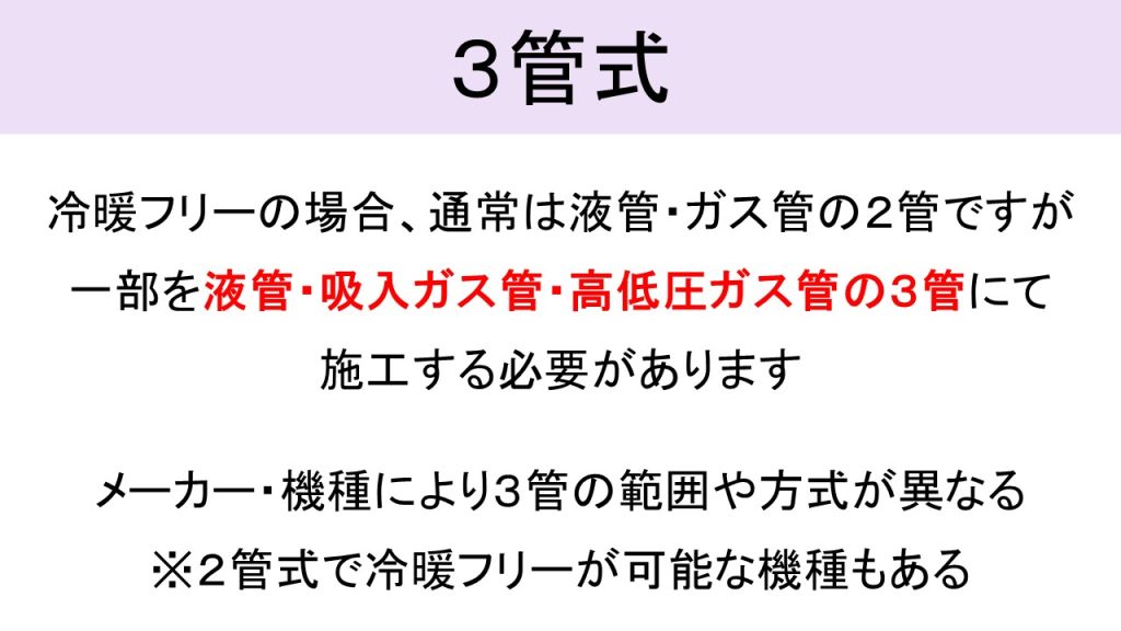 冷暖フリーを採用する場合、配管が2管と3管で分かれます。