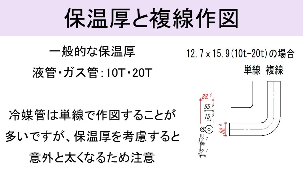 特に3管は保温厚を入れるとかなり太くなるため、スリーブサイズの選定時によく注意しましょう。