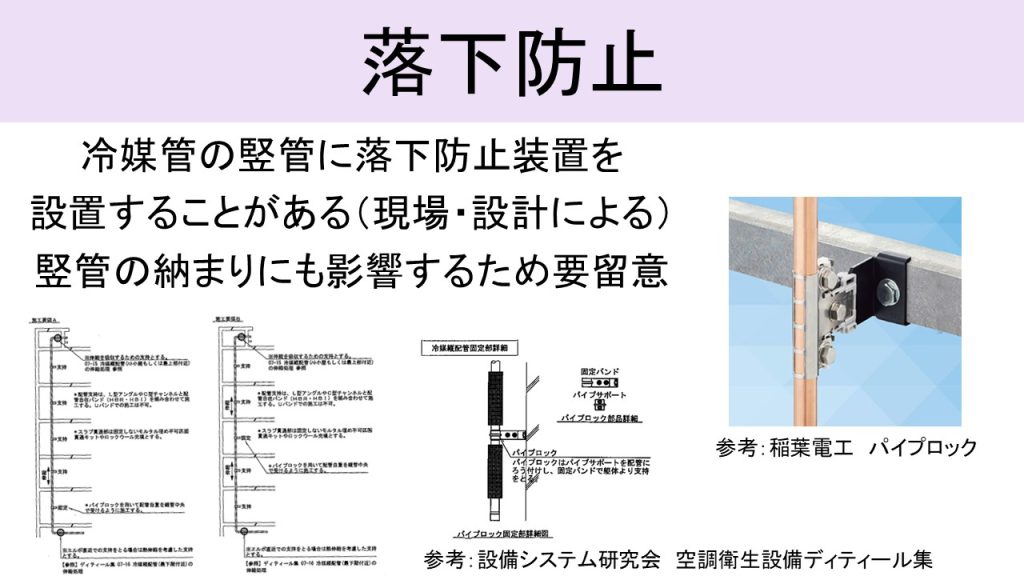 冷媒の落下防止は設計図上で設置箇所が明確になっていることが少ないです。