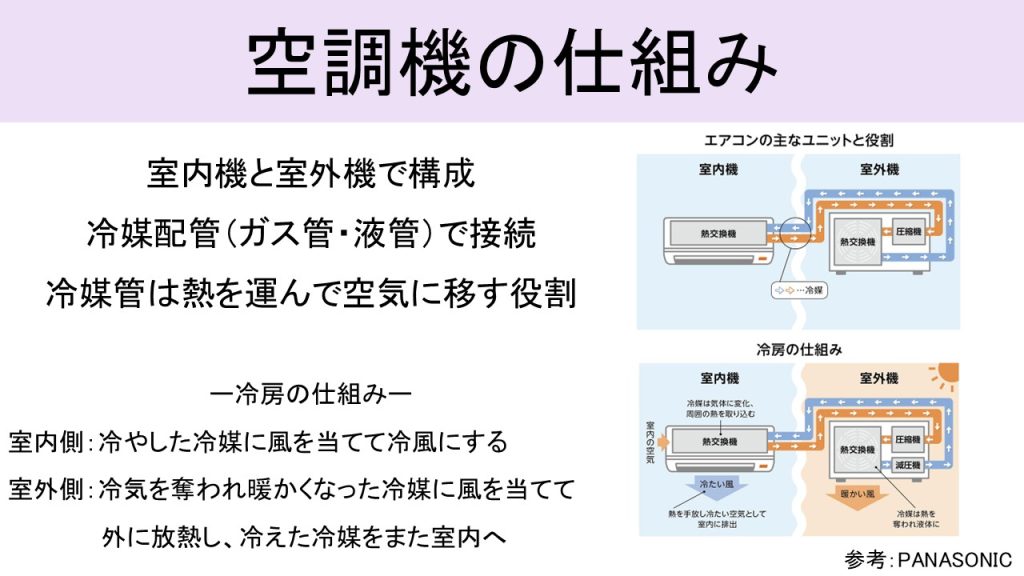空調機と冷媒の仕組みは少し難しい言葉が出てくるため理解しにくいですが、