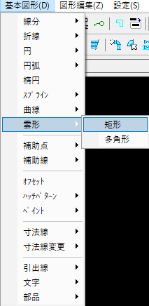 通常の雲マークを作図する際、『基本図形→雲形→矩形・多角形』にて雲マークを作図することができます。