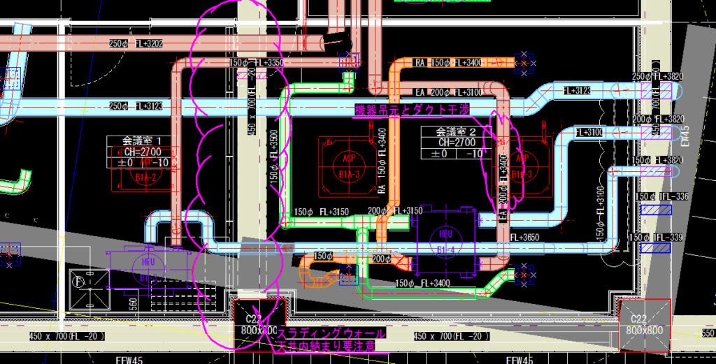 建設現場の図面では質疑や問題点の箇所を『雲マーク』で表現するのが一般的です。