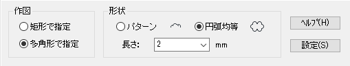 このアイコンで雲マークを作図すると、パターンを「矩形」の通常パターンと「円弧均等」から選択することができます。