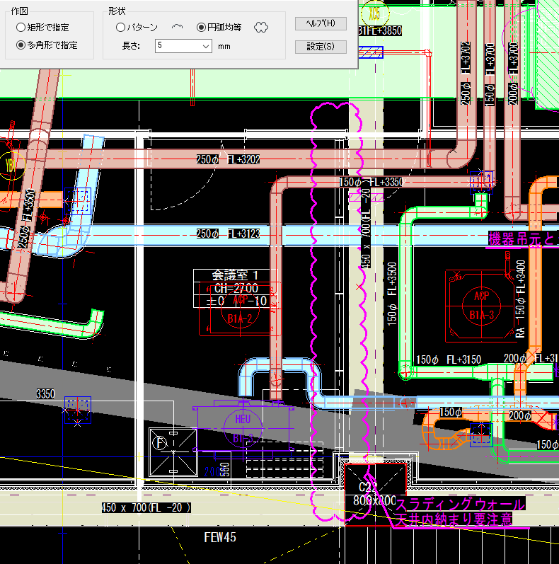 機器表の指定範囲や多角形の部屋の形を雲マークで囲いたいときなど、非常に便利な機能です。