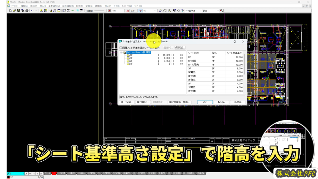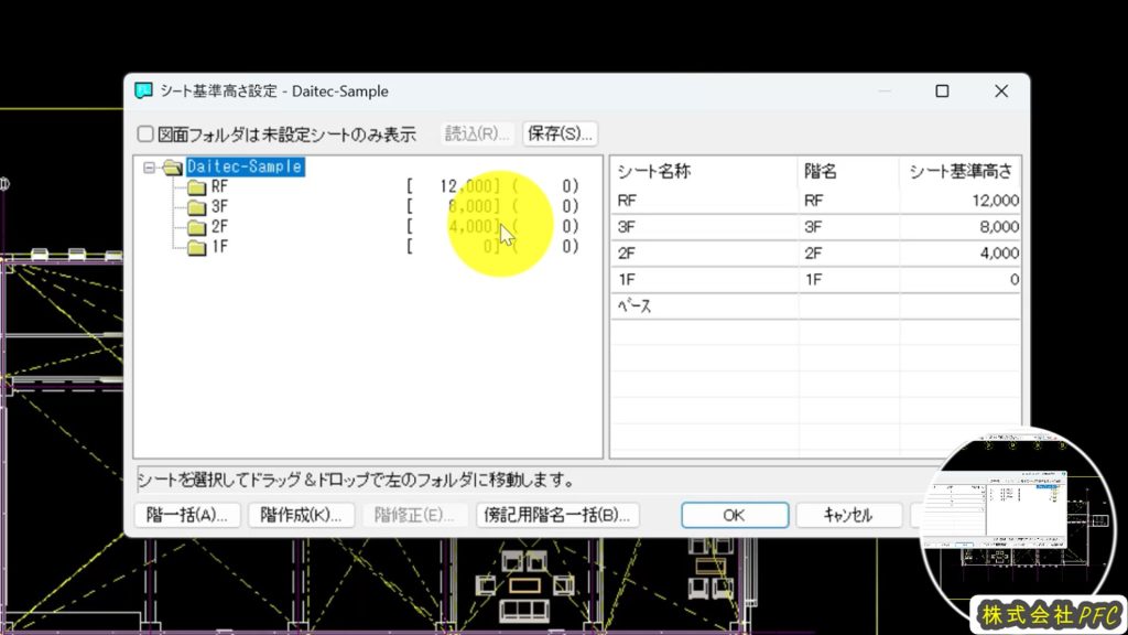 データを取り込むとフロア毎にシートが自動作成されます。