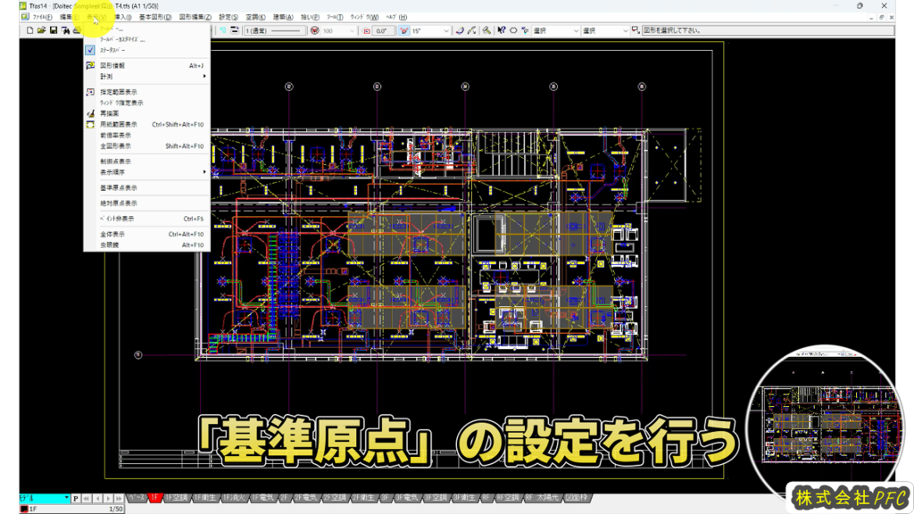 基準原点は「表示ー基準原点表示」で確認することができます。