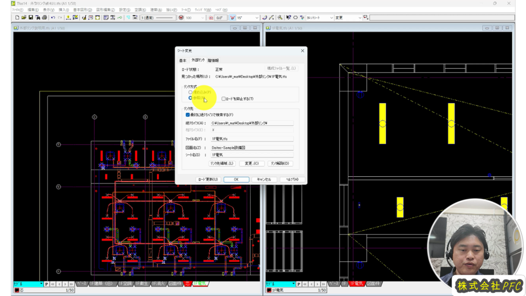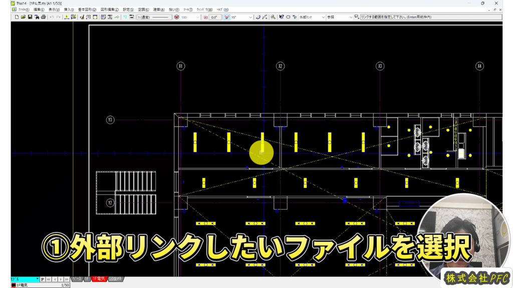 外部リンクの機能とは、作成している図面データに別のファイルの図面データをリンクさせることで、常に最新のデータを読み込み表示させることができる機能になります。