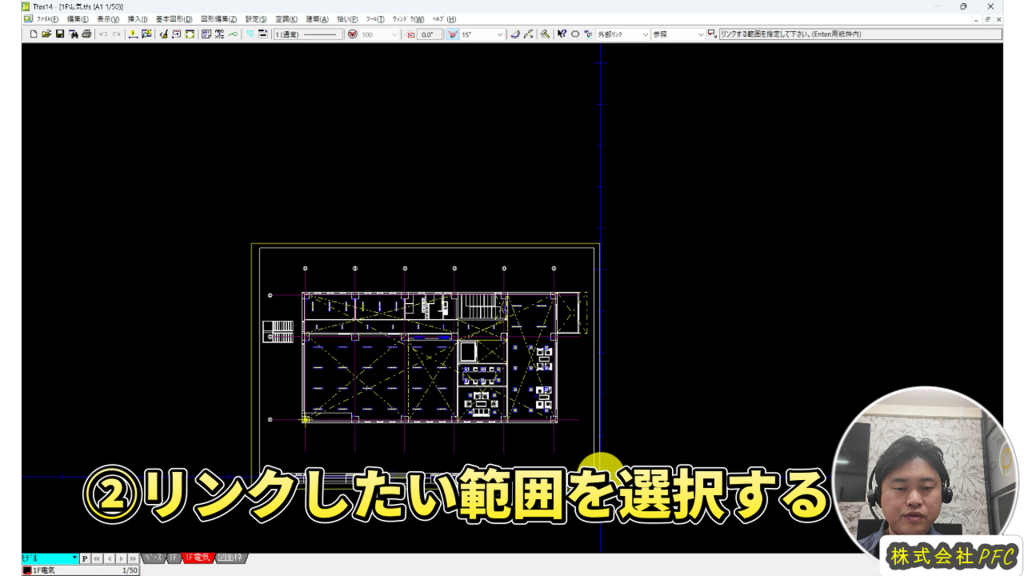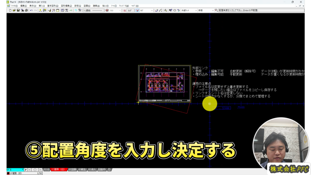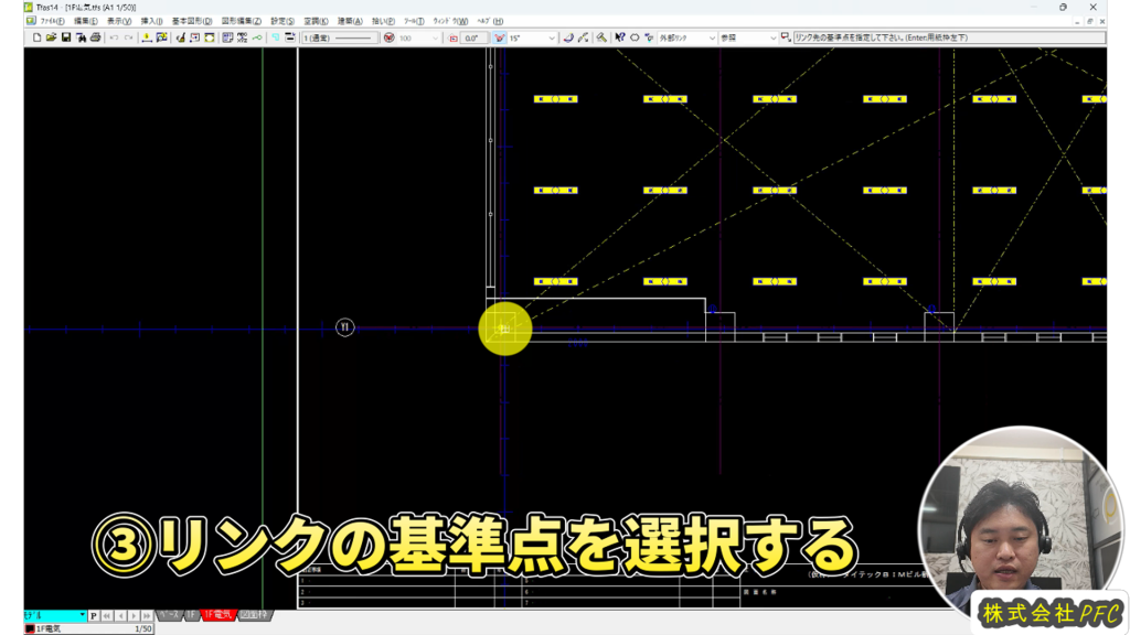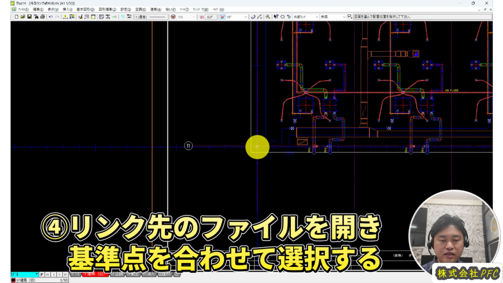 ④リンク先のファイルを開き基準点を合わせて選択します