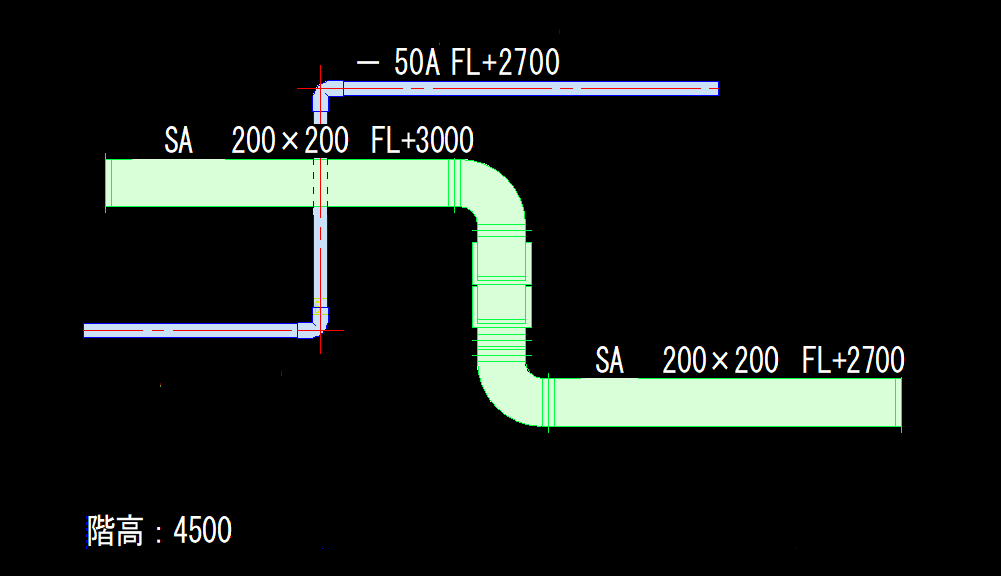 仮に、階高4500のフロアで衛生を見上げで作図してしまった場合を想定しましょう。