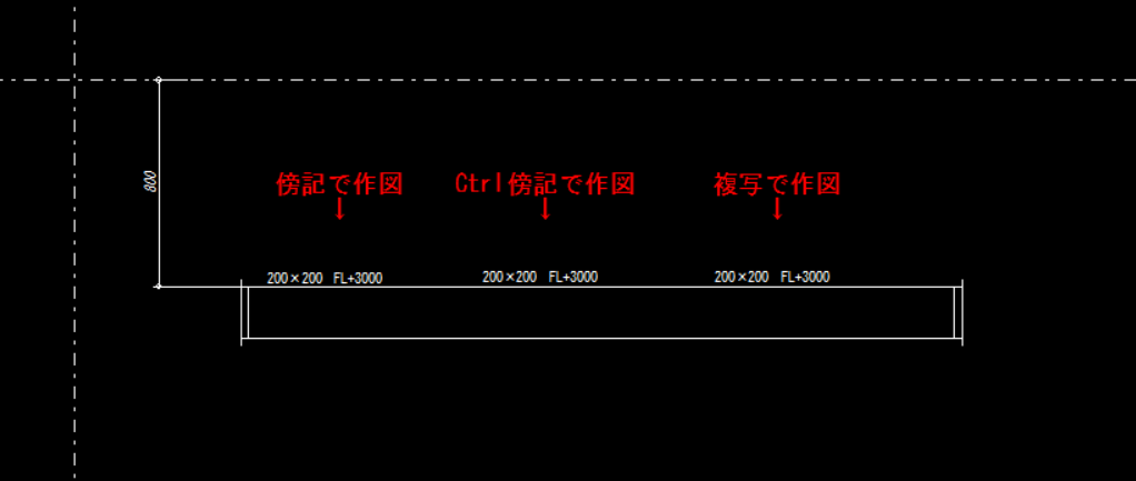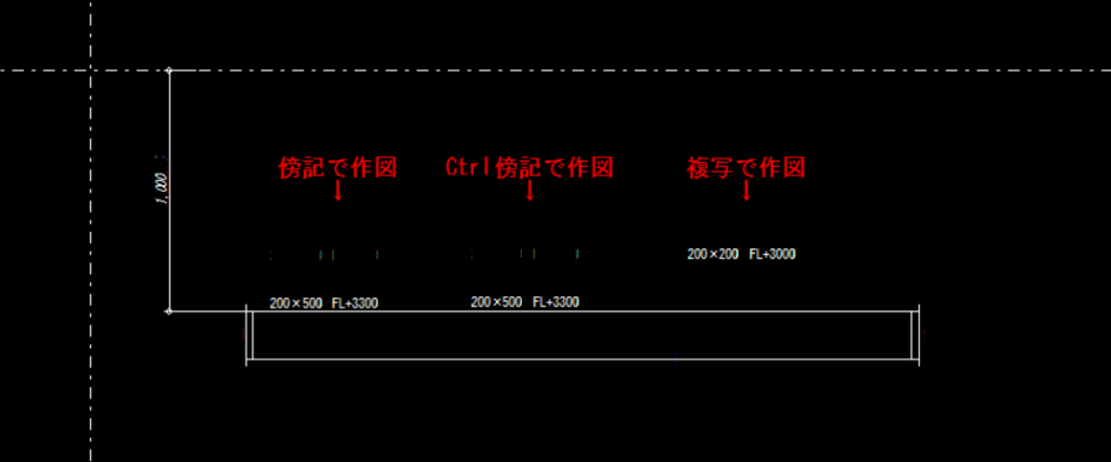 Ctrlで作図した傍記はすべて追従しますが、複写の場合は文字が残ってしまい施工ミスの原因になりかねません。