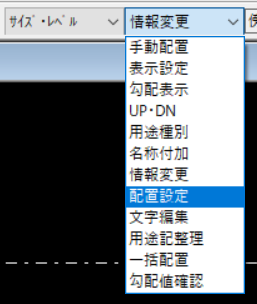 傍記入力のコマンドを使用している状態で、情報変更のタブをクリックすると『配置設定』というものがあります。