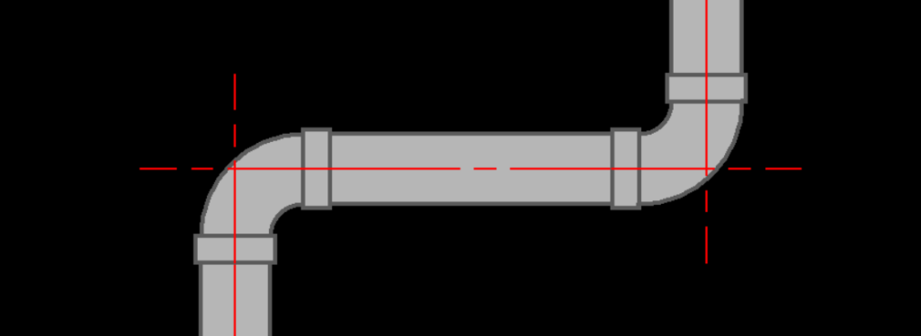 正しくロングエルボで作図をしておかないと、トイレ廻りの配管などは意外と納まらなくなってしまうことがあるのでよく確認しましょう。