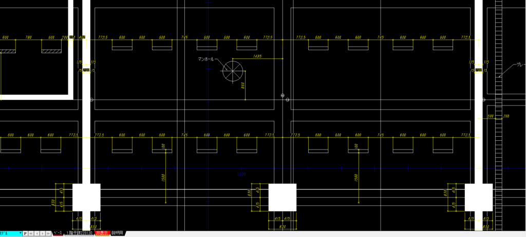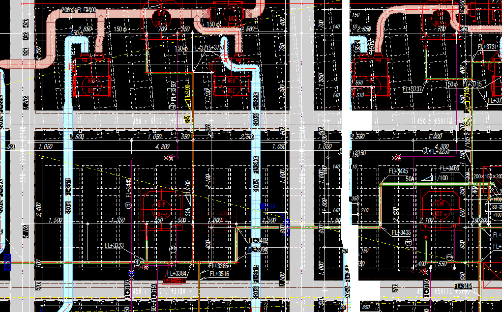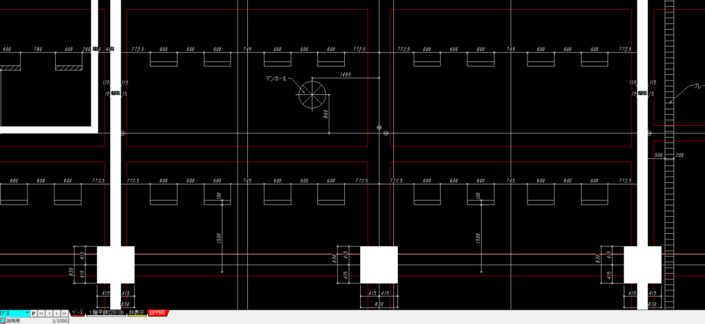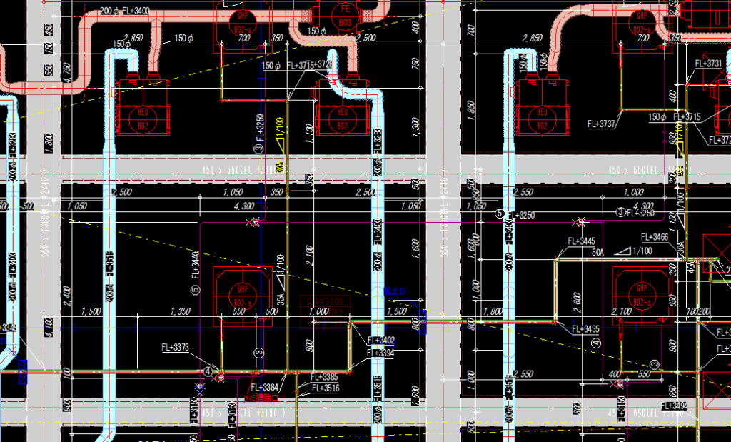 設備施工図には建築から受領した平面詳細図や躯体図のデータを載せる必要がありますが、