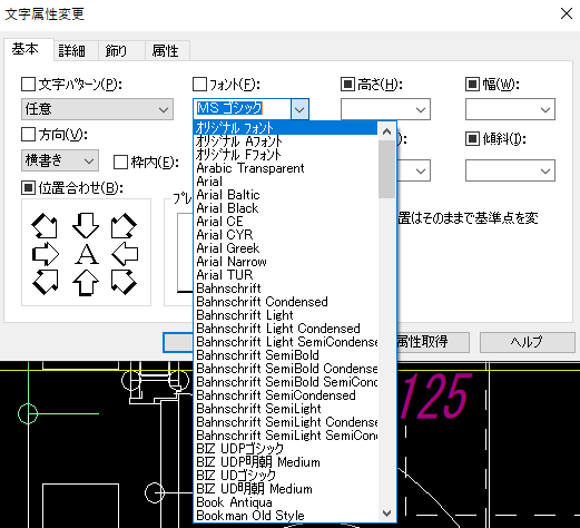 建築文字の多くは「MSゴシック」などで作図されていますが、変更する際は「オリジナルフォント」がおすすめです。