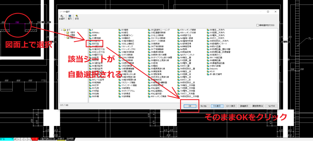 建築図の情報を整理したい場合は、『レイヤ選択』と『シート移動』を駆使して行いましょう。