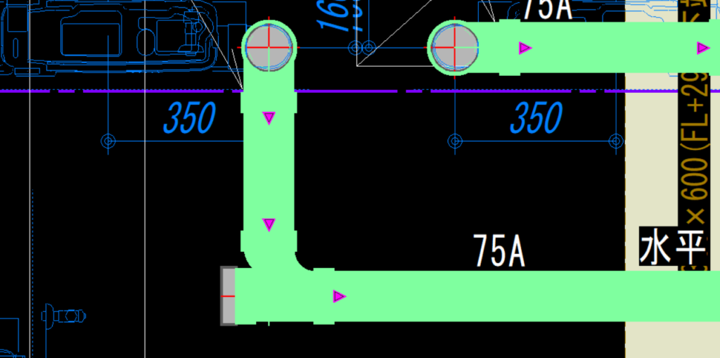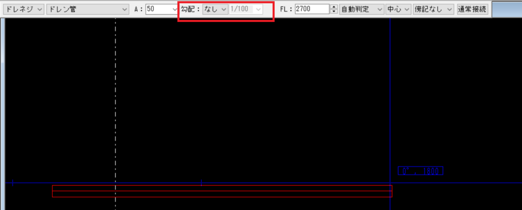 一度水平で配管を作図してしまい、作図が完了した段階で勾配を作図します。