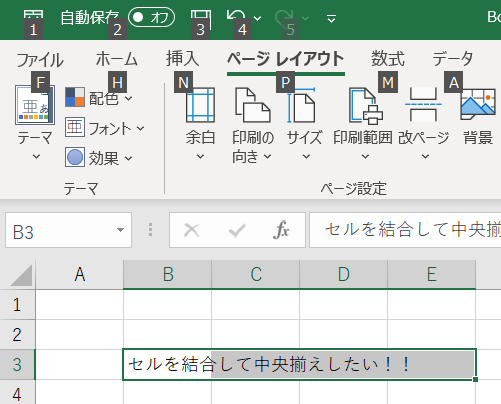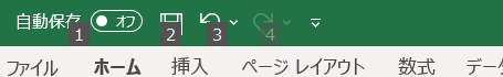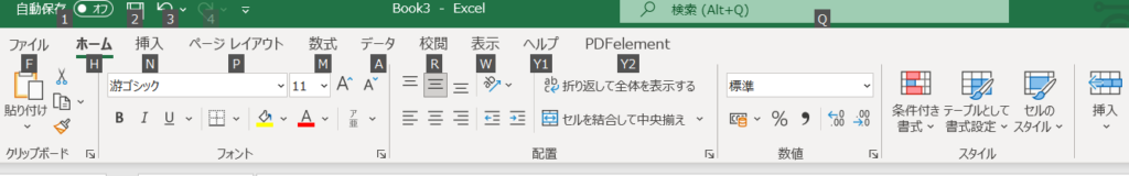 ALTキーを押すと、ツールバーより上の左上にある「保存」や「もとに戻る」「やり直し」などにも番号が振られているのがわかります。