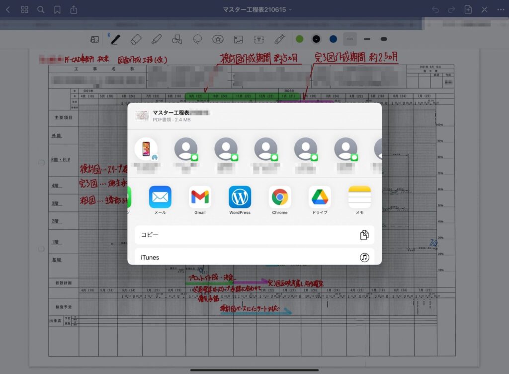 私も設計図は製本、施工図も印刷してチェックが基本だったため事務作業ではiPadを持て余していたのですが、